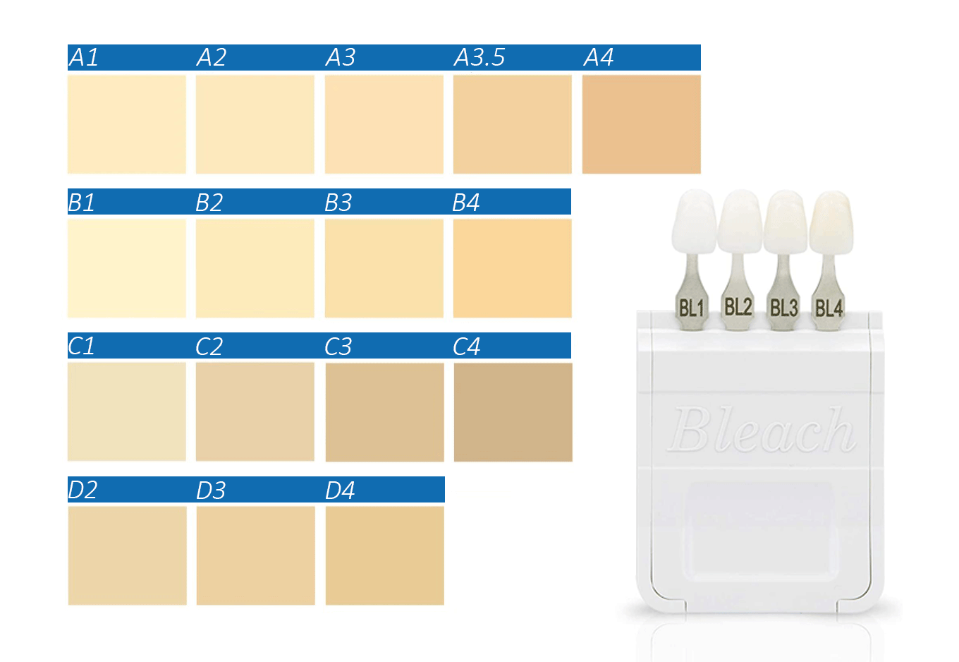3D Pro Multilayer Shade Range: VITA® 16 shades + 4 bleach shades (BL1, BL2, BL3, BL4)
