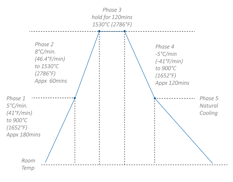 4. Dropping from 1530°C (2786°F) to 900°C (1652°F), 5°C/min, approximately by 120mins.